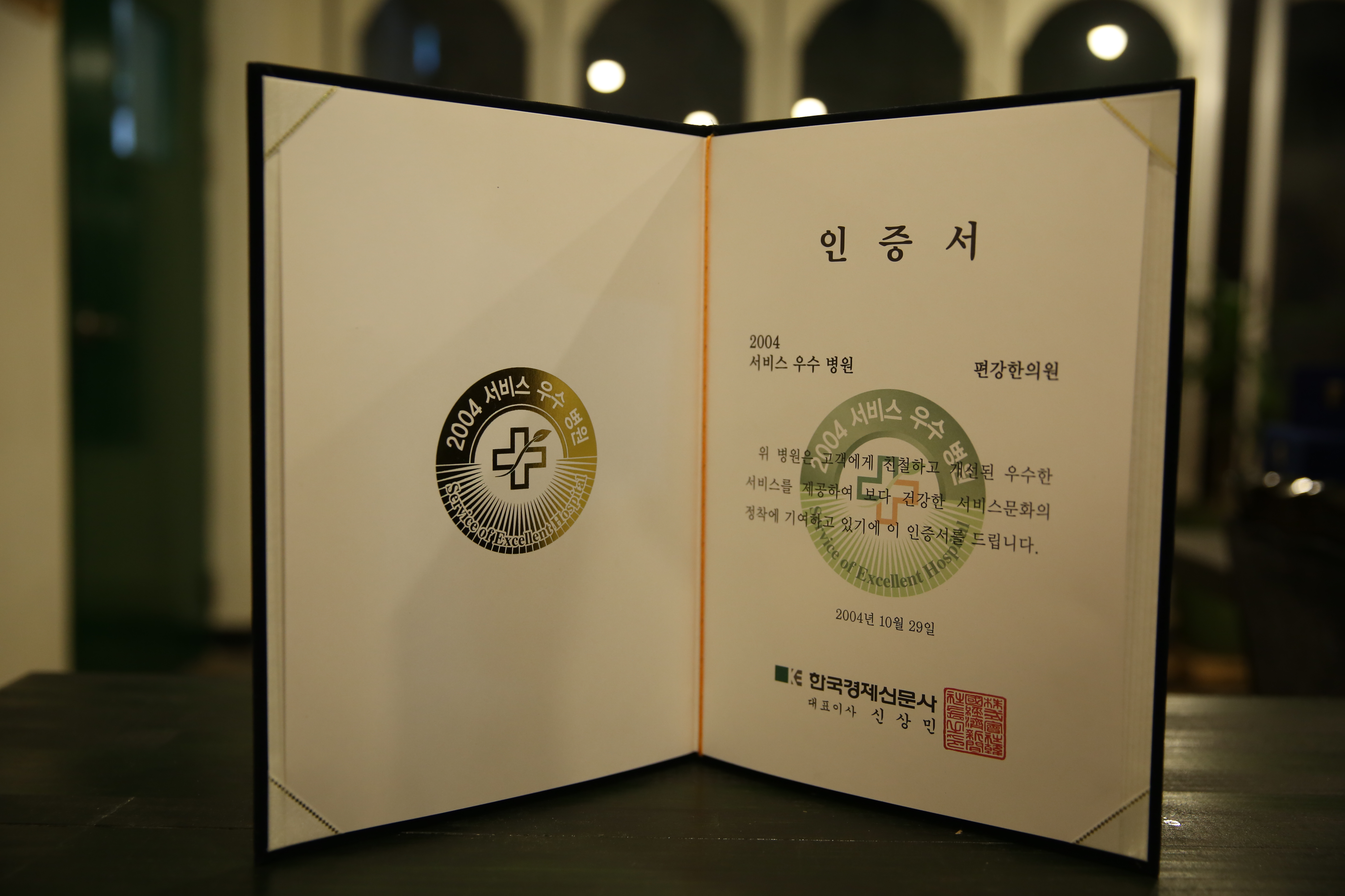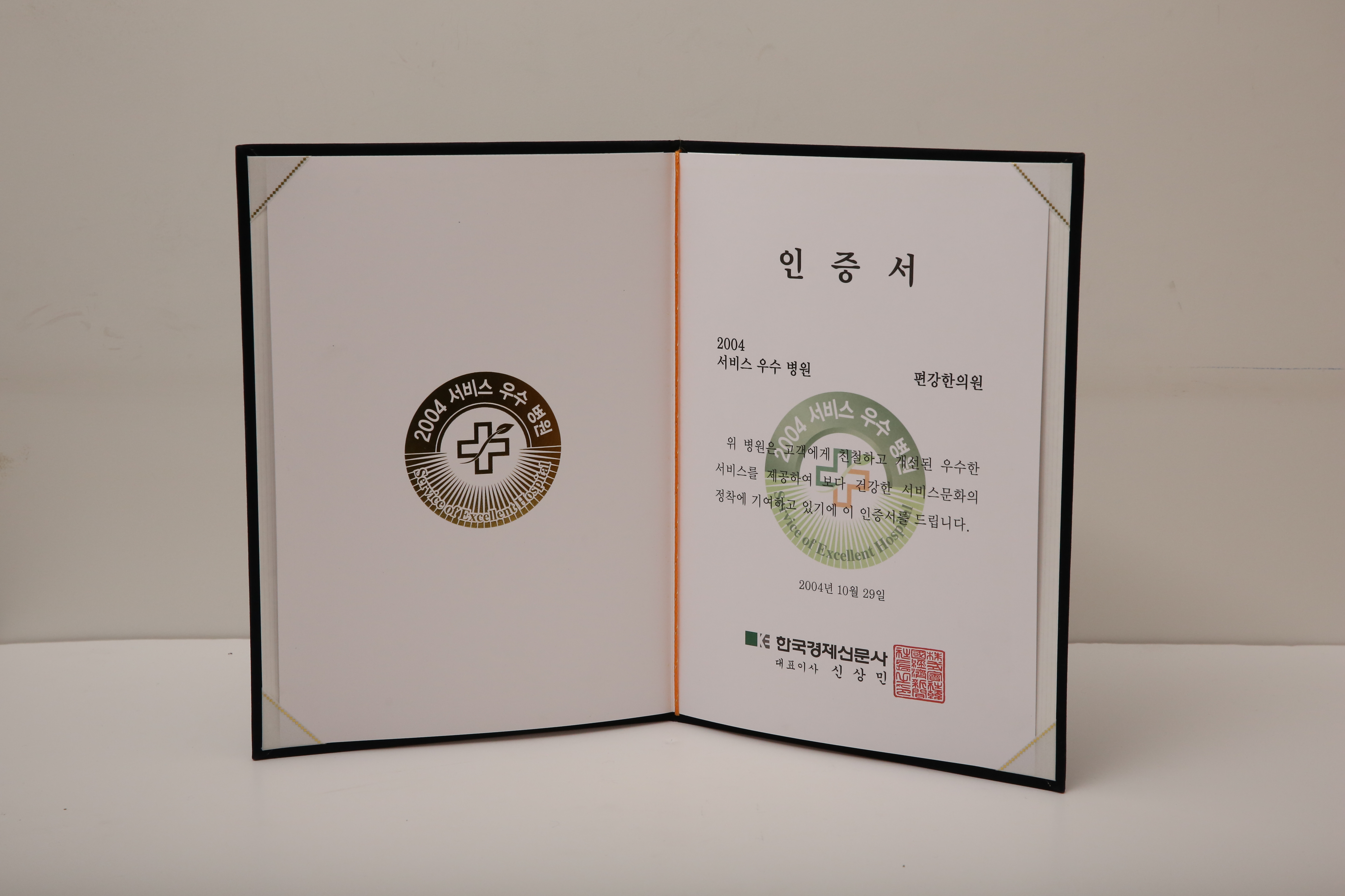 2004년 한국경제신문사 우수병원인증서